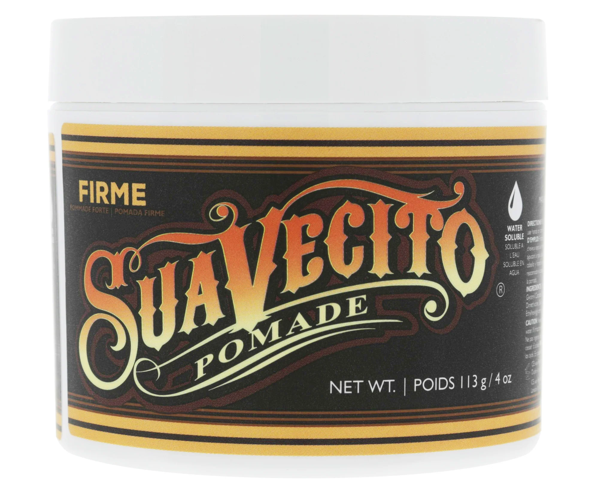 Taking Suavecito’s Original Hold pomade formula and kicking it up a notch, Suavecito’s Firme Hold Pomade is an extra strength hair styling pomade. For those days your hair needs a little extra ‘help’, this water soluble pomade will tame anything you throw at it. This formula works great for curly, thick or stubborn hair. Pompadours, slick backs and side parts can be styled with ease. Strong and tough but still combs in with ease. With the same awesome base ingredients and scent as our original, this pomade washes out easily and doesn’t flake. No need for any special soaps or shampoos. It dries with a high firmness and medium shine.