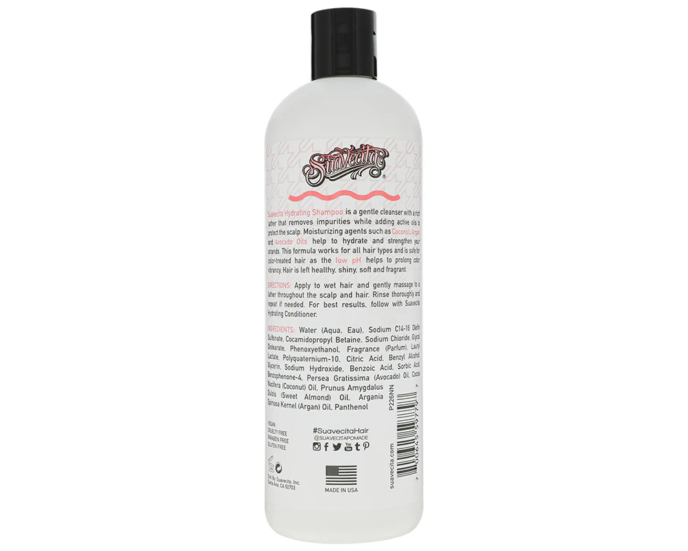 Suavecita Hydrating Shampoo is a gentle cleanser that works into a rich lather to remove impurities while adding active oils to protect the scalp. Moisturizing agents such as Coconut Oil, Argan Oil, and Avocado Oil help to hydrate and strengthen your strands. This formula works for all hair types and is safe for color-treated hair as the low PH helps to prolong color vibrancy. Hair is left healthy, shiny, soft and fragrant.
