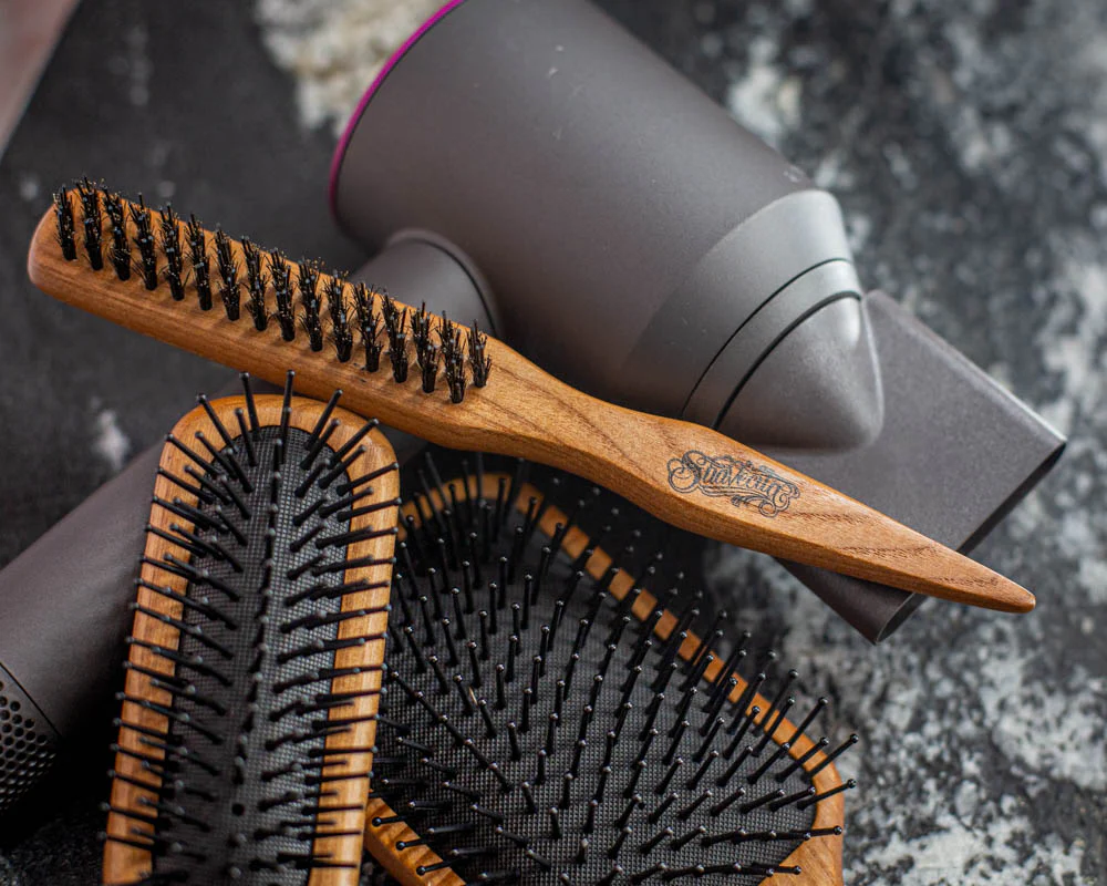 This Teasing Brush works great for backcombing, teasing and smoothing. The staggered nylon bristles allow you to lift hair and add volume for big hairdo's. The tapered end allows easy sectioning. These high quality brushes are made from naturally aged wood and may differ slightly in color and grain.